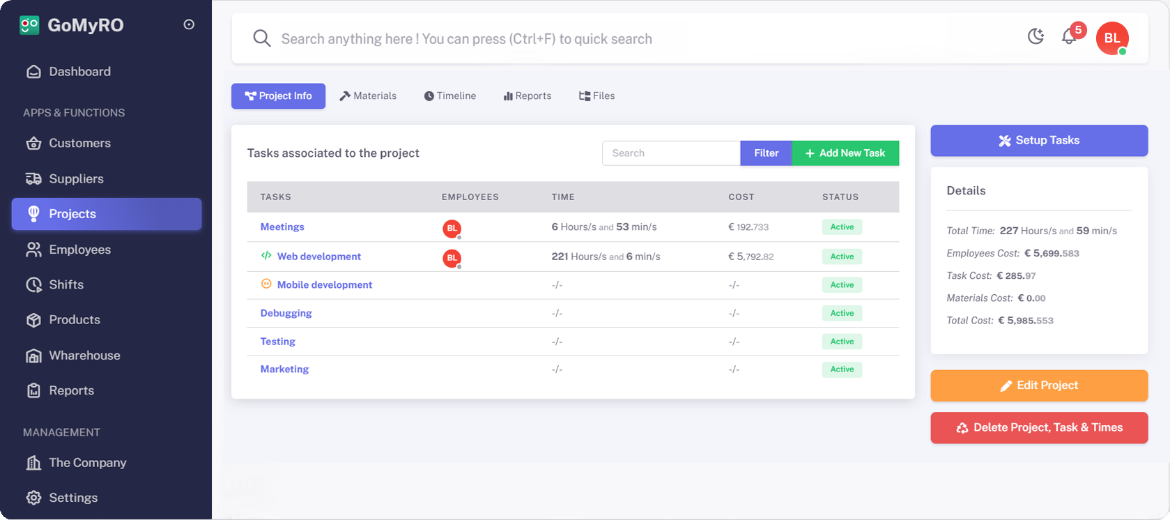 La nostra piattaforma offre una soluzione completa per la gestione dei progetti, progettata per fornire un'ampia supervisione, dall'inizio alla fine. Con una serie di funzionalità avanzate, puoi gestire i progetti in modo efficiente, monitorare i progressi in tempo reale e garantire un utilizzo ottimale delle risorse.