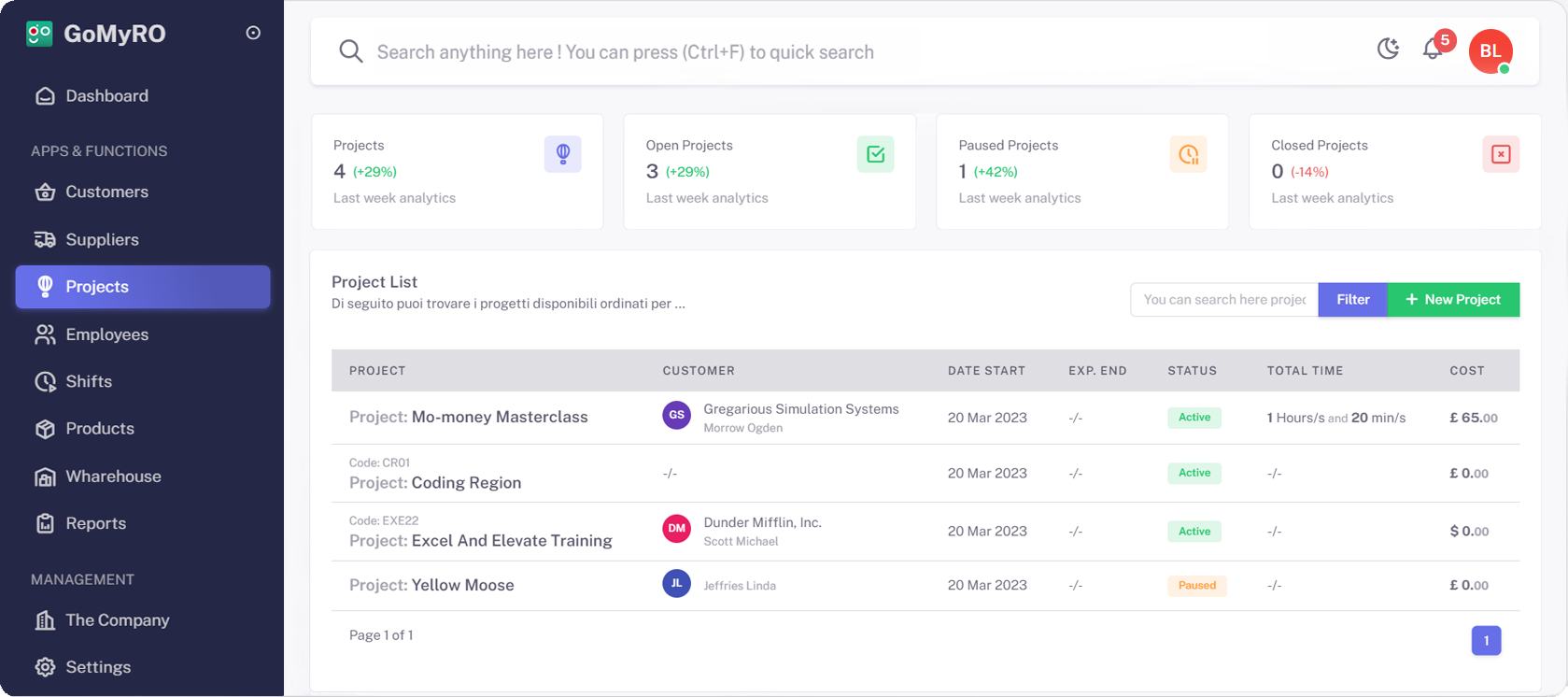 Crea progetti per ogni cliente per organizzare e ottimizzare il flusso di lavoro. La nostra piattaforma ti consente di associare i progetti a clienti specifici, consentendo una collaborazione e una comunicazione senza soluzione di continuità durante l'intero ciclo di vita del progetto.